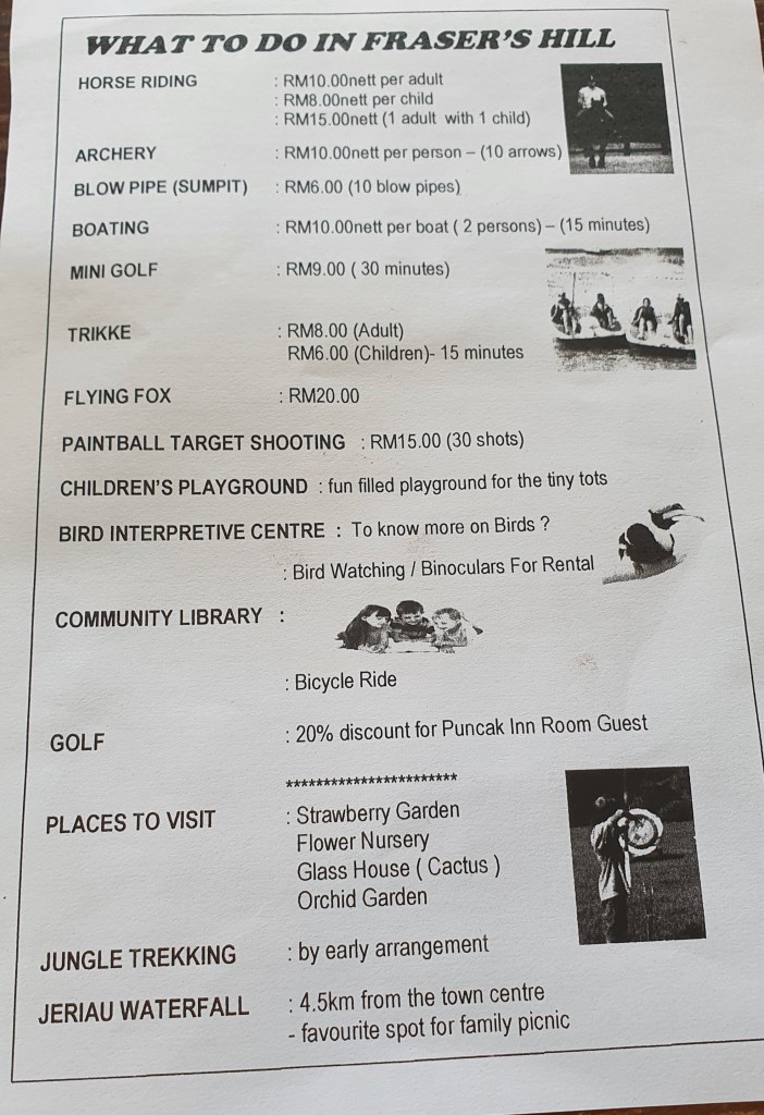 Make sure your fuel tank is full as there is no gas station in Fraser Hill.
